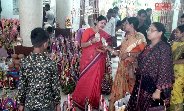 লক্ষ্মীর প্রতিমা, সরা ও উপকরণ নিয়ে বরিশাল নগরের হাটখোলার হরিমন্দিরে মেলা। ছবি: মুশফিক সৌরভ।