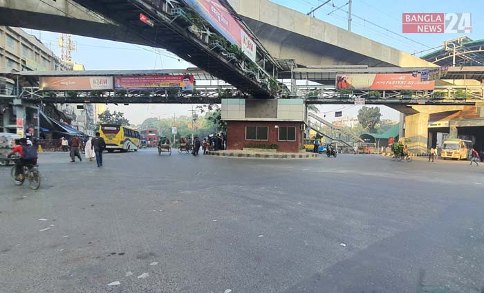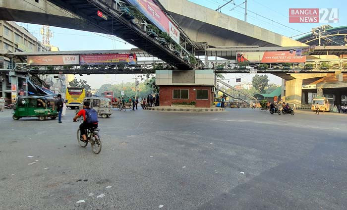 বিএনপি-জামায়াতের ডাকা ৭২ ঘণ্টা অবরোধের প্রথম দিনের শুরুতে মিরপুর ১০ নম্বর গোল চত্বর এলাকার চিত্র। ছবি জি এম মুজিবুর।