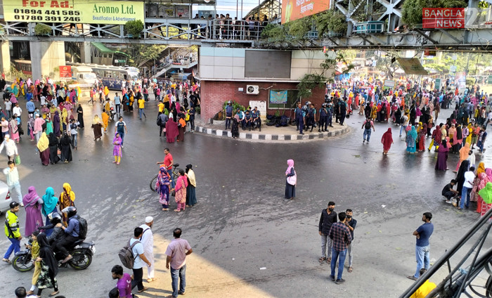 চতুর্থ দফায় অবরোধের প্রথম দিনে পোশাকশ্রমিকদের দখলে মিরপুর ১০। ছবি: জিএম মুজিবুর