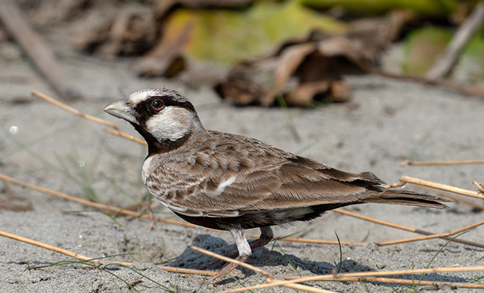 চরের মাটিতে হাঁটছে পুরুষ পাখি মেটোচাঁদি-চড়ুইভরত। ছবি: শামীম আলী চৌধুরী
