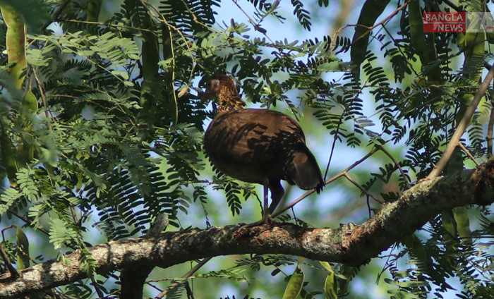 চা বাগানের বিরল পাখি ‘পাহাড়ি বনমুরগি’। ছবি: বিশ্বজিৎ ভট্টাচার্য বাপন