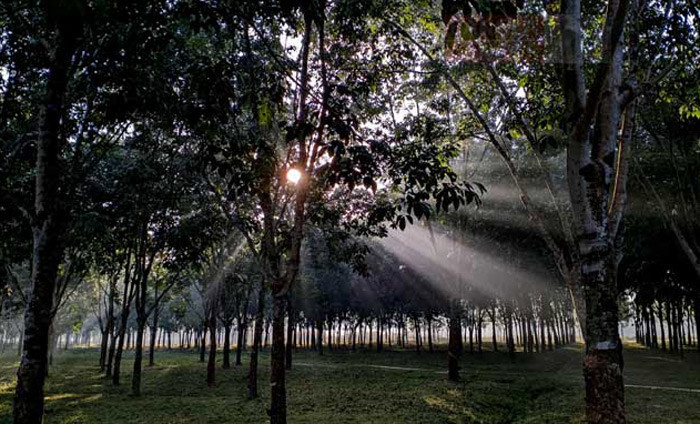 রাবার বাগানে সূর্য কিরণের প্রাকৃতিক সৌন্দর্য। ছবি: বিশ্বজিৎ ভট্টাচার্য বাপন
