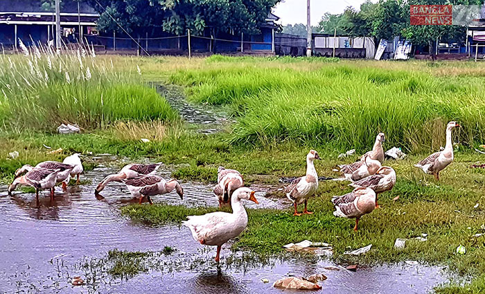 খোলা মাঠে রাজ হাঁসের দল। কুমিল্লা মুরাদনগর থেকে ছবিটি তুলেছেন জি এম মুজিবুর।