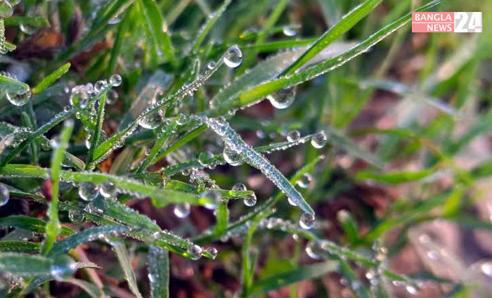 সবুজ ঘাসের শিশিরে সকালের রোদ পড়লে মনে হয় মুক্তা ছড়িয়ে আছে, ছবি: শাকিল আহমেদ