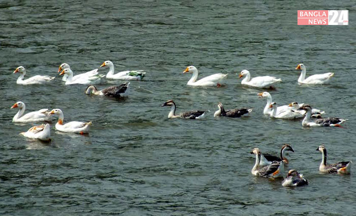 জলকেলিতে ব্যস্ত রাজহাঁসের দল, পাবনার পারভাঙ্গুড়া ইউনিয়নের কৈডাঙ্গার গুমানী নদী থেকে ছবিটি তুলেছেন টিপু সুলতান