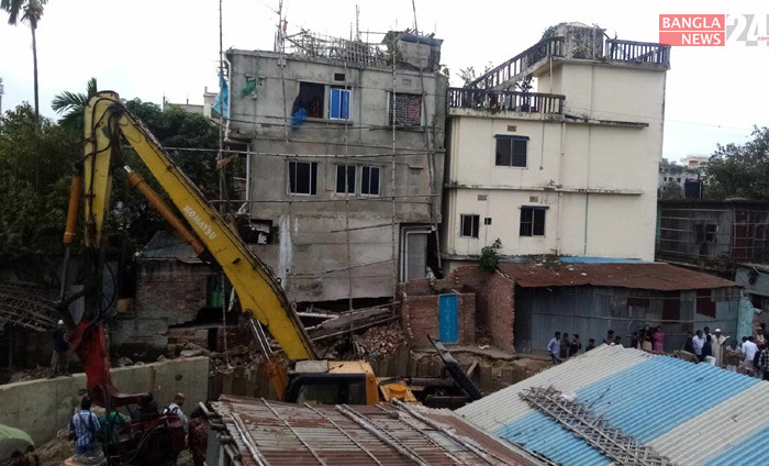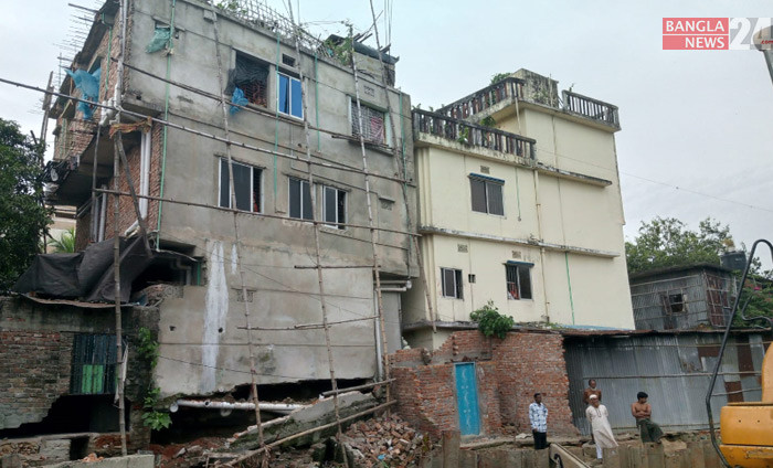 চট্টগ্রামের সরাইপাড়া এলাকায় একটি তিনতলা ভবন হেলে পড়েছে। ছবি: সোহেল সরওয়ার