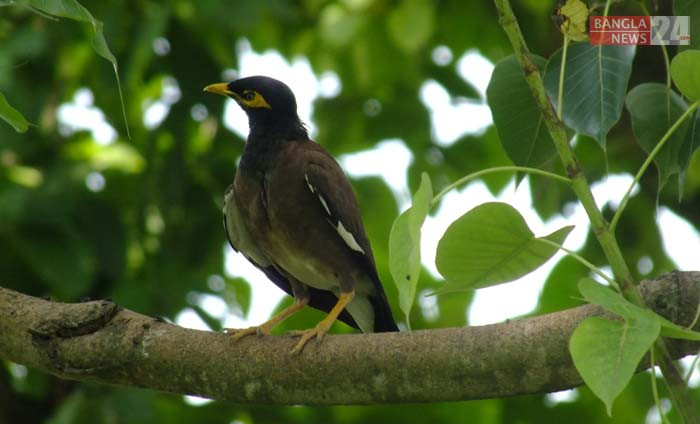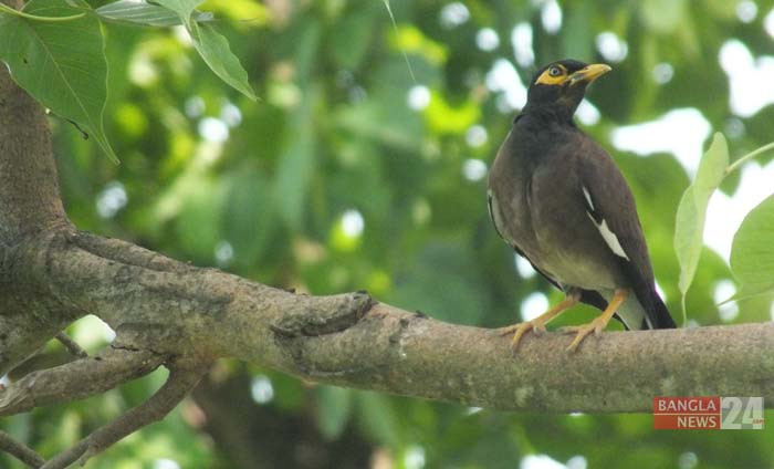 হেমন্তের সকালে গাছের ডালে বসে শালিক পাখি। পাবনার ঈশ্বরদী থেকে ছবিটি তুলেছেন টিপু সুলতান।