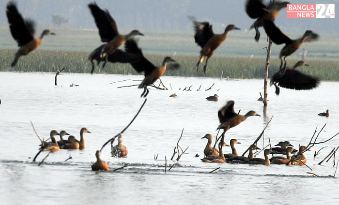 মাগুরার মহম্মদপুরের ঘোপ বাওড়ে শীত এলেই পরিযায়ী পাখিদের দেখা মেলে, ছবিটি: জয়ন্ত জোয়ার্দার