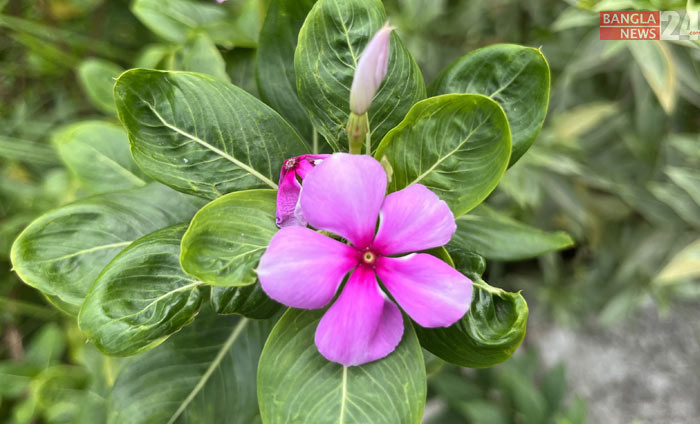 রাস্তার পাশে ফুটে আছে নয়নতারা। ছবি: রাজীন চৌধুরী
