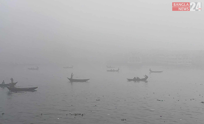 কুয়াশায় ঢাকা বুড়িগঙ্গা, ঝুঁকি নিয়েই চলেছে নদী পারাপার। শনিবার (২৩ ডিসেম্বর) সালে রাজধানীর সদরঘাট থেকে ছবিটি তুলেছেন সাঈদ আল হাসান শিমুল।
