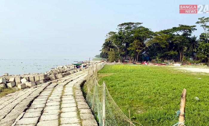 মেঘনার তীর ঘেঁষে দাঁড়িয়ে চাঁদপুরের একটি গ্রাম। নদীকে কেন্দ্র করেই জীবন-জীবিকা গ্রামের বাসিন্দাদের। ছবি: সাঈদ আল হাসান