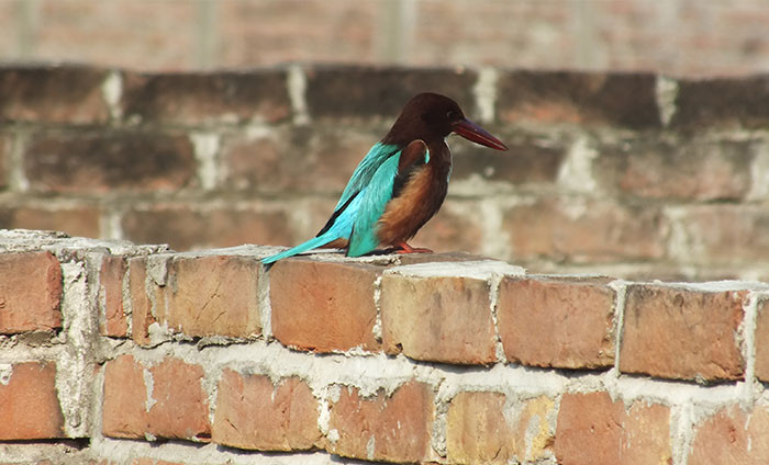 শীতের সকালে ইটের প্রাচীরে বসে মাছরাঙা পাখি। ঈশ্বরদী শহরের পিয়ারাখালী মহল্লা থেকে ছবিটি তুলেছেন টিপু সুলতান।