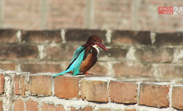 শীতের সকালে ইটের দেয়ালে বসে আছে মাছরাঙা পাখি। ঈশ্বরদী শহরের পিয়ারাখালী মহল্লা থেকে ছবিটি তুলেছেন টিপু সুলতান