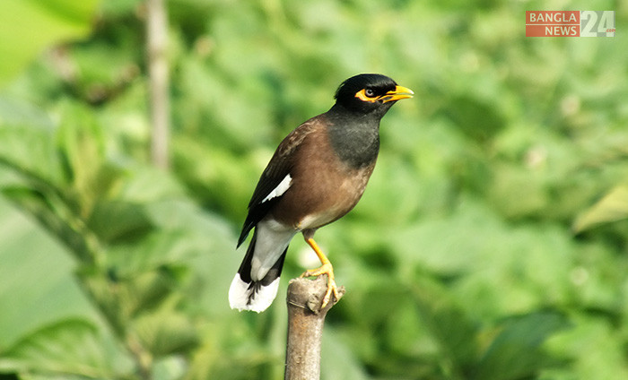 পৌষের কনকনে শীতে বাঁশের খুঁটিতে এক পায়ে দাড়িয়ে শালিক পাখি। পাবনার ঈশ্বরদী শহরের নবাব আলীবর্দি সড়ক থেকে ছবিটি তুলেছেন টিপু সুলতান।