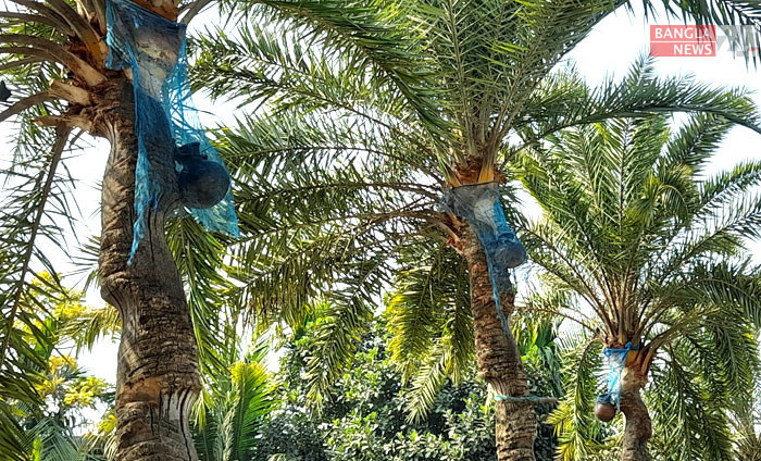 সারিবদ্ধ খেজুর গাছে ঝুলছে রসের হাঁড়ি, লক্ষ্মীপুরের চররুহিতা এলাকা থেকে ছবিটি তুলেছেন মো. নিজাম উদ্দিন