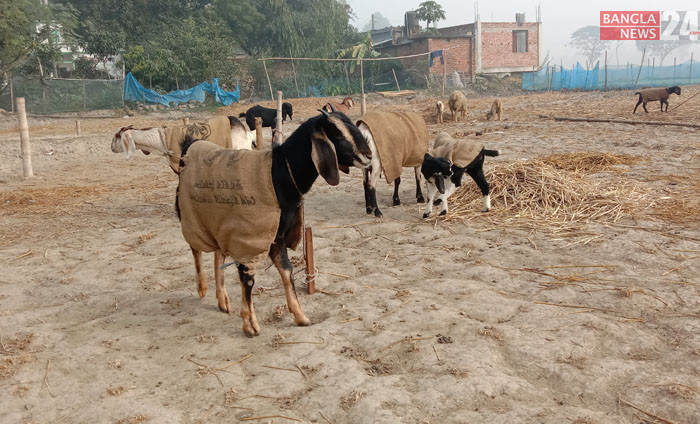 কনকনে ঠান্ডা থেকে বাঁচাতে গবাদি পশুদেরও পরানো হয়েছে চটের বস্তা-পুরোনো কাপড়। ছবিটি পাঠিয়েছেন মোস্তাফিজুর রহমান