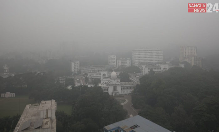 কুয়াশায় ঢেকেছে ঢাকা। সেগুনবাগিচা এলাকা থেকে ছবি তুলেছেন শাকিল আহমেদ