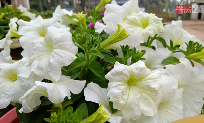 বাগানে মুগ্ধতা ছড়াচ্ছে নজরকাড়া পিটুনিয়া ফুল। ছবি: মো. নিজাম উদ্দিন