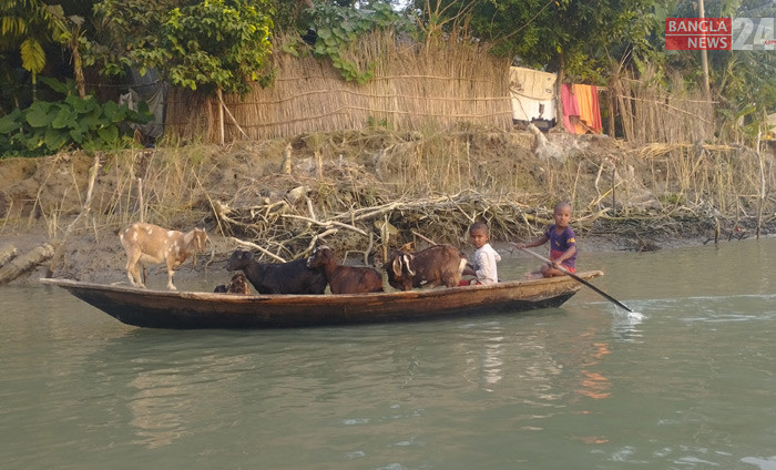নৌকায় চেপে বাড়িতে ছাগল নিয়ে যাচ্ছে দুই শিশু। ছবিটি বরিশাল সদর উপজেলার নলচর এলাকা থেকে তুলেছেন মুশফিক সৌরভ।