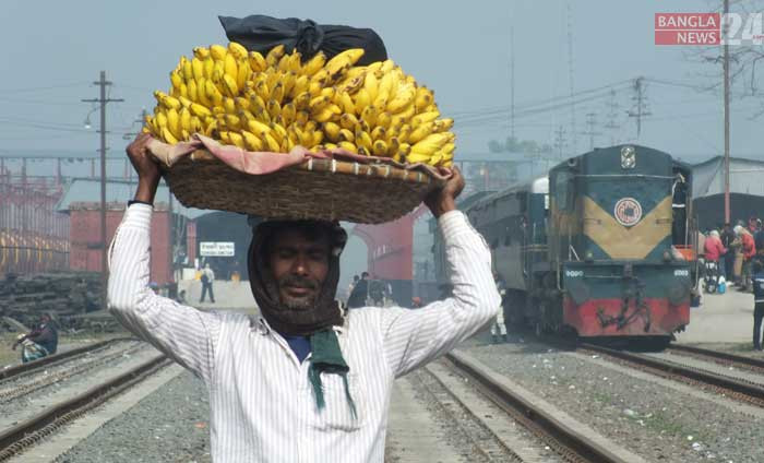 শীতের সকালে মাথায় কলার ঝুড়ি নিয়ে ছুটছেন এক ফেরিওয়ালা। ছবিটি পাবনার ঈশ্বরদী জংশন এলাকা থেকে তুলেছেন টিপু সুলতান।