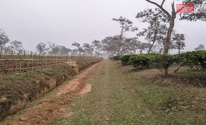 মেঠোপথের দুই পাশে পুরাতন এবং নতুন চা গাছ। ছবি: বিশ্বজিৎ ভট্টাচার্য বাপন