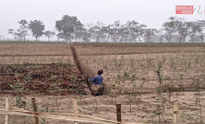 আবাদ করা জমিতে কাজ করছেন এক শ্রমিক। ছবি: বিশ্বজিৎ ভট্টাচার্য বাপন
