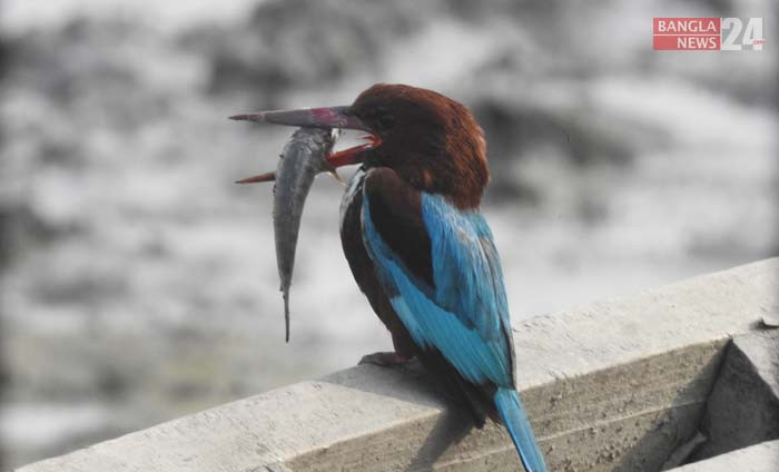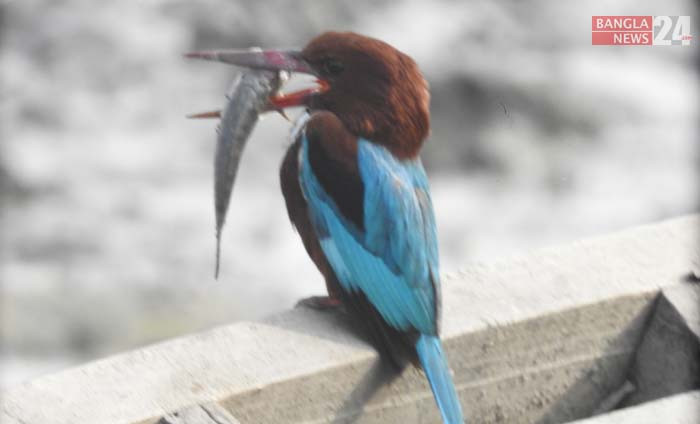 পুকুরের ধারে নৌকার ওপর মাছরাঙা পাখি। শ্রীরামপুর এলাকা থেকে ছবি তুলেছেন জয়ন্ত জোয়ার্দ্দার।