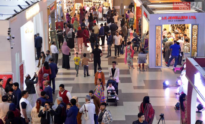 শনিবার শেষ দিনেও ক্রেতা-দর্শণার্থীদের পদচারণায় মুখরিত ছিল বাজুস ফেয়ার। ছবিটি রাজধানীর আইসিসিবি’র নবরাত্রি হল থেকে তুলেছেন জিএম মুজিবুর