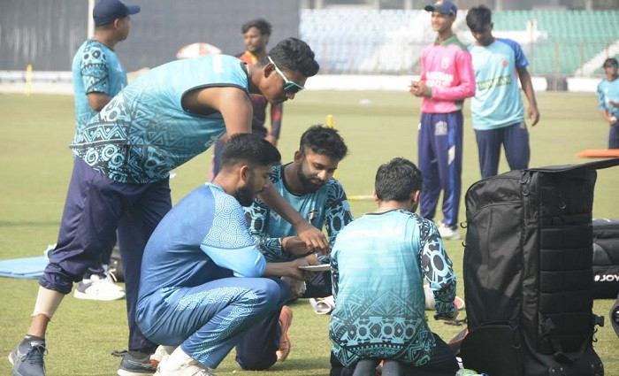 বিপিএল চট্টগ্রাম পর্ব শুরুর একদিন আগে এম এ আজিজ স্টেডিয়ামে অনুশীলনের প্রস্তুতি। ছবি: সোহেল সরওয়ার