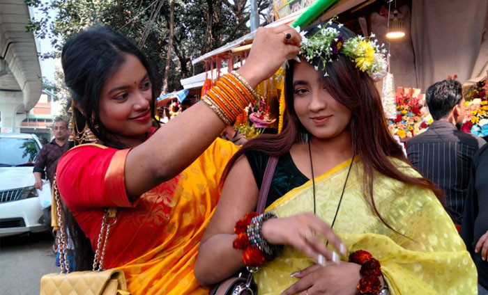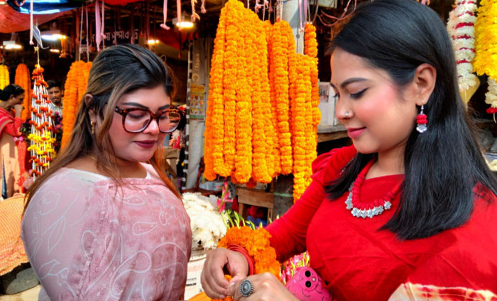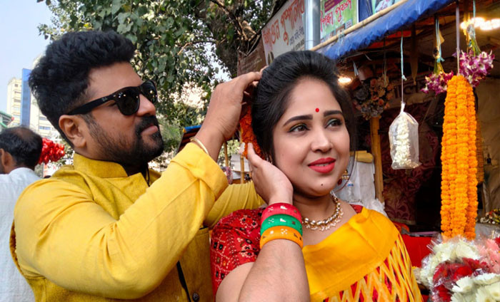 পহেলা ফাল্গুন ও ভালোবাসা দিবস উপলক্ষে রাজধানীর শাহবাগে ফুলের মার্কেট জমজমাট। ছবি: শাকিল আহমেদ