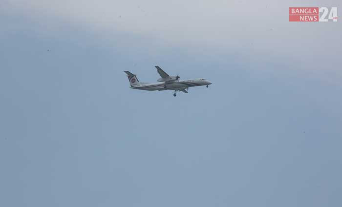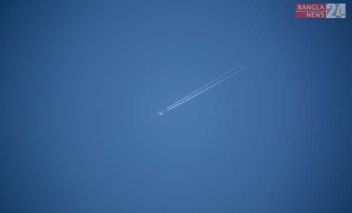 নীল আকাশে উড়ছে বিমান। রাজধানীর উত্তরা থেকে ছবি তুলেছেন রাজীন চৌধুরী