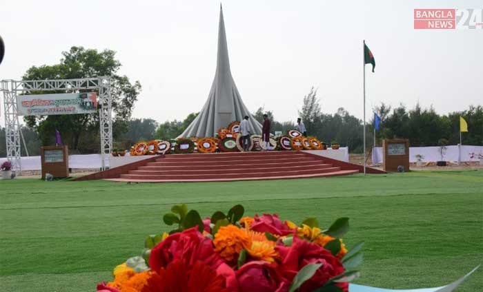 চট্টগ্রামের কাট্টলী এলাকায় নবনির্বাচিত অস্থায়ী স্মৃতিসৌধে সর্বসাধারণের শ্রদ্ধা। ছবি: সোহেল সরওয়ার