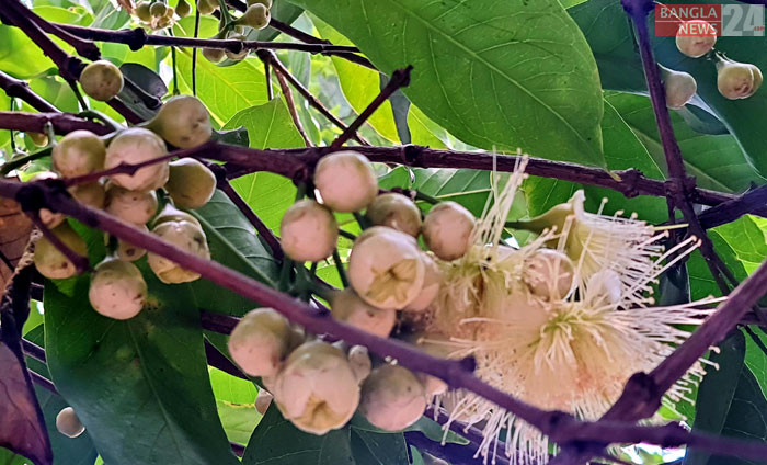 গাছে থোকায় থোকায় ঝুলছে জামরুল। রাজধানীর মিরপুর থেকে ছবিটি তুলেছেন জি এম মুজিবুর