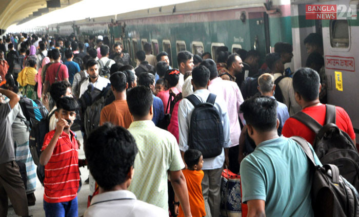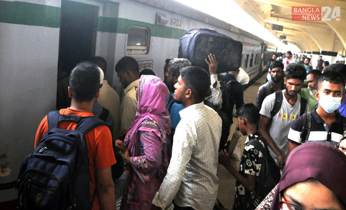 ঘরমুখী মানুষের চাপ বেড়েছে কমলাপুর স্টেশনে, ছবি: শাকিল আহমেদ