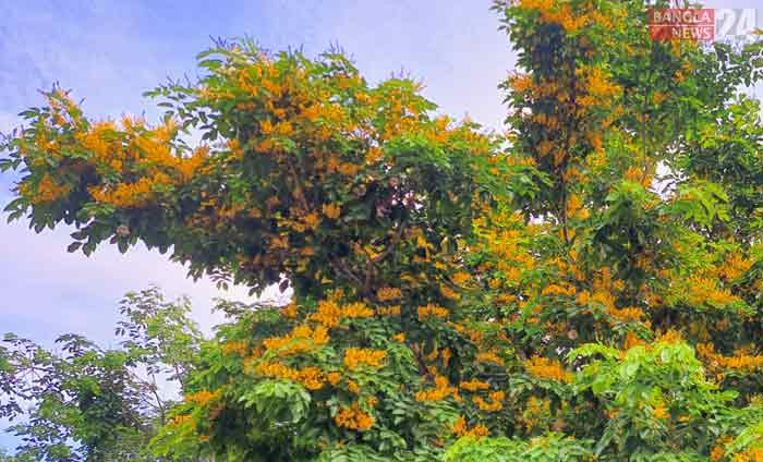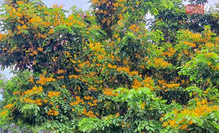 সবুজ পাতার মাঝে হলুদ ফুল, দেখতে লাগছে অপরুপ। খিলক্ষেত এলাকা থেকে ছবি তুলেছেন জি এম মুজিবুর।