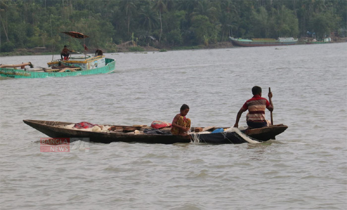 কীর্তনখোলা নদীতে জাল ফেলে মাছ শিকার করছে মান্তা সম্প্রদায়ের নারী-পুরুষ। ছবি: এন আমিন রাসেল
