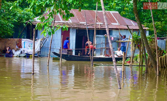 সিলেটের ছয় উপজেলায় এখনও পানিবন্দি মানুষ, ছবিটি ফেঞ্চুগঞ্জ উপজেলা সদর ইউনিয়ন থেকে তোলা। ছবি: মাহমুদ হোসেন