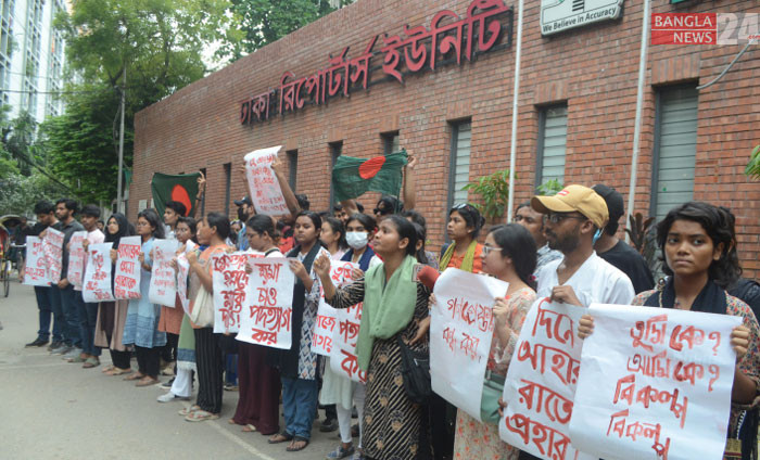 রাজধানীর সেগুনবাগিচায় ঢাকা রিপোর্টার্স ইউনিটির সামনে প্রতিবাদ সমাবেশ করেছেন কোটা সংস্কার আন্দোলনের শিক্ষার্থীরা। ছবি: ডিএইচ বাদল