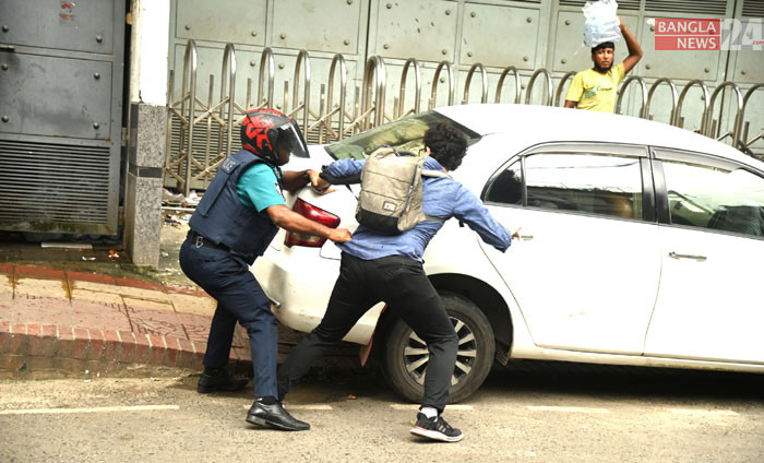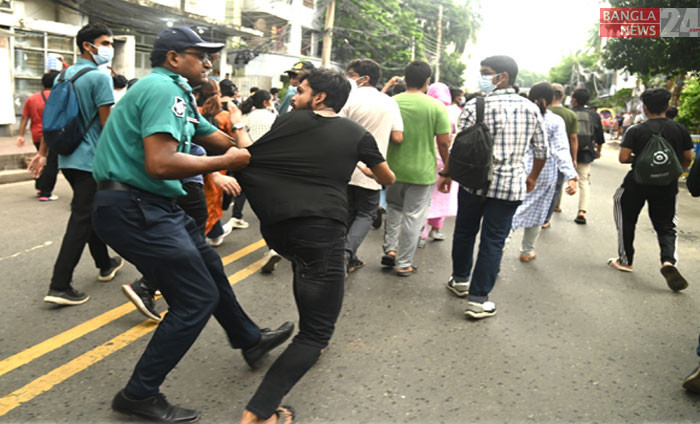 চট্টগ্রামের চেরাগী এলাকায় আন্দোলনকারীদের ছত্রভঙ্গ করে দেয় পুলিশ। ছবি: সোহেল সরওয়ার
