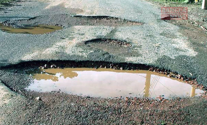 বন্যার পর সড়কে স্থান দখল করে আছে বড়-ছোট গর্ত। ছবি: বাংলানিউজ