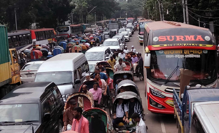 রাজধানীতে তীব্র যানজট। গুলিস্তান এলাকা থেকে ছবিটি তুলেছেন শাকিল আহমেদ
