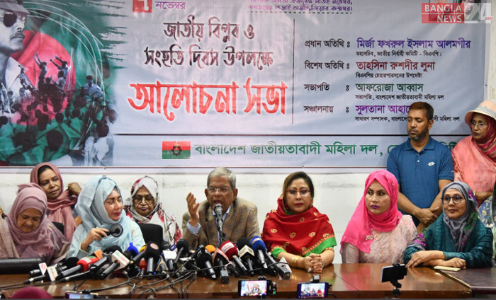 বিপ্লব ও সংহতি দিবস উপলক্ষে এক আলোচনা সভায় প্রধান অতিথির বক্তব্যে দিচ্ছেন বিএনপির মহাসচিব মির্জা ফখরুল ইসলাম আলমগীর। জাতীয় প্রেসক্লাব থেকে ছবি তুলেছেন শাকিল আহমেদ।