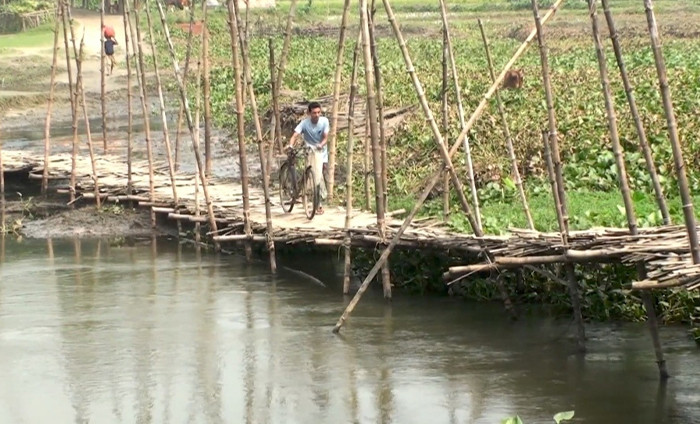 সিরাজগঞ্জের ইছামতি নদীর সরাইচন্ডী এলাকায় একটি সেতুর অভাবে পারাপারে দুর্ভোগ। ছবি: স্বপন চন্দ্র দাস