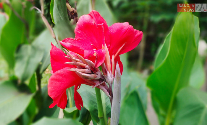 বাগানে ফুটেছে লাল কান্না লিলি ফুল। ছবি শাকিল আহমেদ