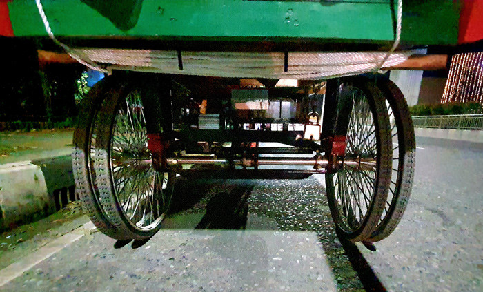 সাধারণত তিন চাকার অটো বা ভ্যানের দাপট দেখা যায় সড়কে। তবে সম্প্রতি পাঁচ চাকার ভ্যানও দেখা গেছে সড়কে। এতে সাধারণ ভ্যানের চেয়ে বেশি ভারী মালামাল বহন করা যায়। ছবি: জিএম মুজিবুর