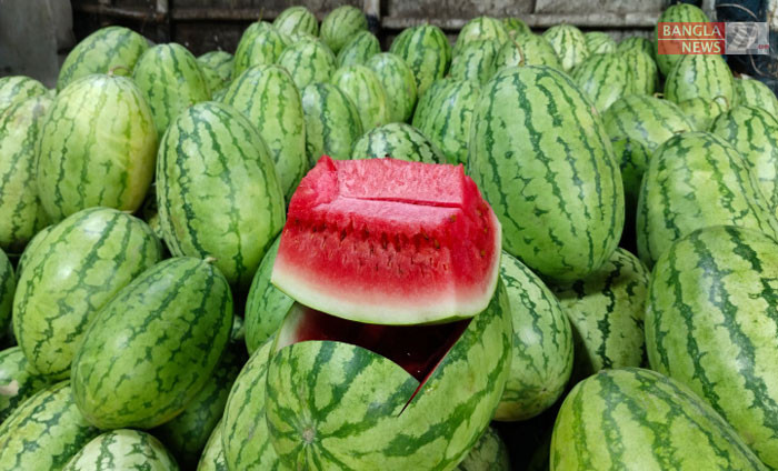 মৌসুম ছাড়াও বছর জুড়ে পাওয়া যাচ্ছে তরমুজ। যাত্রাবাড়ী ফলের আড়ত থেকে ছবি তুলেছেন শাকিল আহমেদ