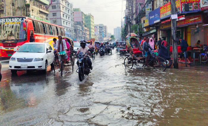 সামান্য বৃষ্টিতে রাজধানীর রামপুরা সড়কে দেখা দিয়েছে জলাবদ্ধতা/ছবি: শাকিল আহমেদ