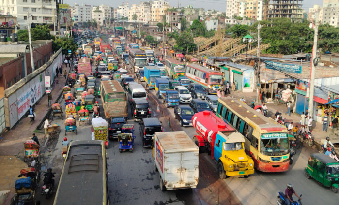 রাজধানীর বাড্ডা-রামপুরা রোডে তীব্র যানজট/ছবি: শাকিল আহমেদ