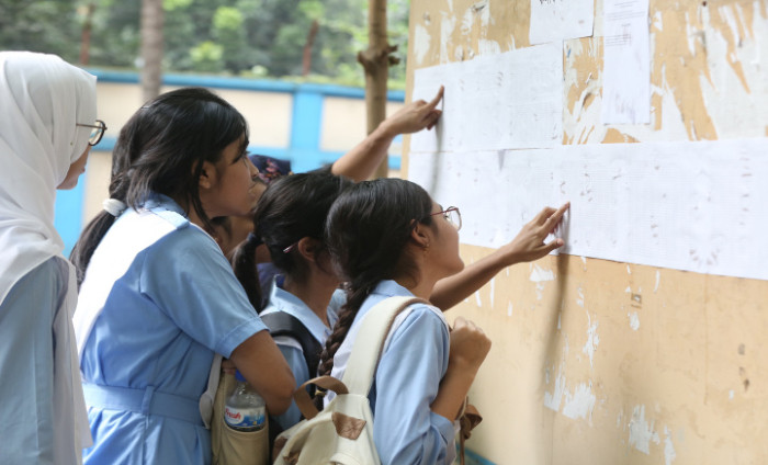 ফলাফল প্রকাশের পর নোটিশবোর্ডে শিক্ষার্থীরা রোল নম্বর খুঁজছেন। ছবিটি ভিকারুননিসা নূন স্কুল অ্যান্ড কলেজ থেকে তুলেছেন শাকিল আহমেদ।