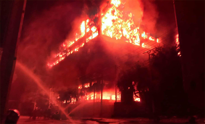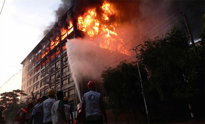 চট্টগ্রামের নগরের ইপিজেডে অ্যাডামস ক্যাপ কারখানায় বৃহস্পতিবার বিকেলে ভয়াবহ আগুন লাগে। ছবি: সোহেল সরওয়ার